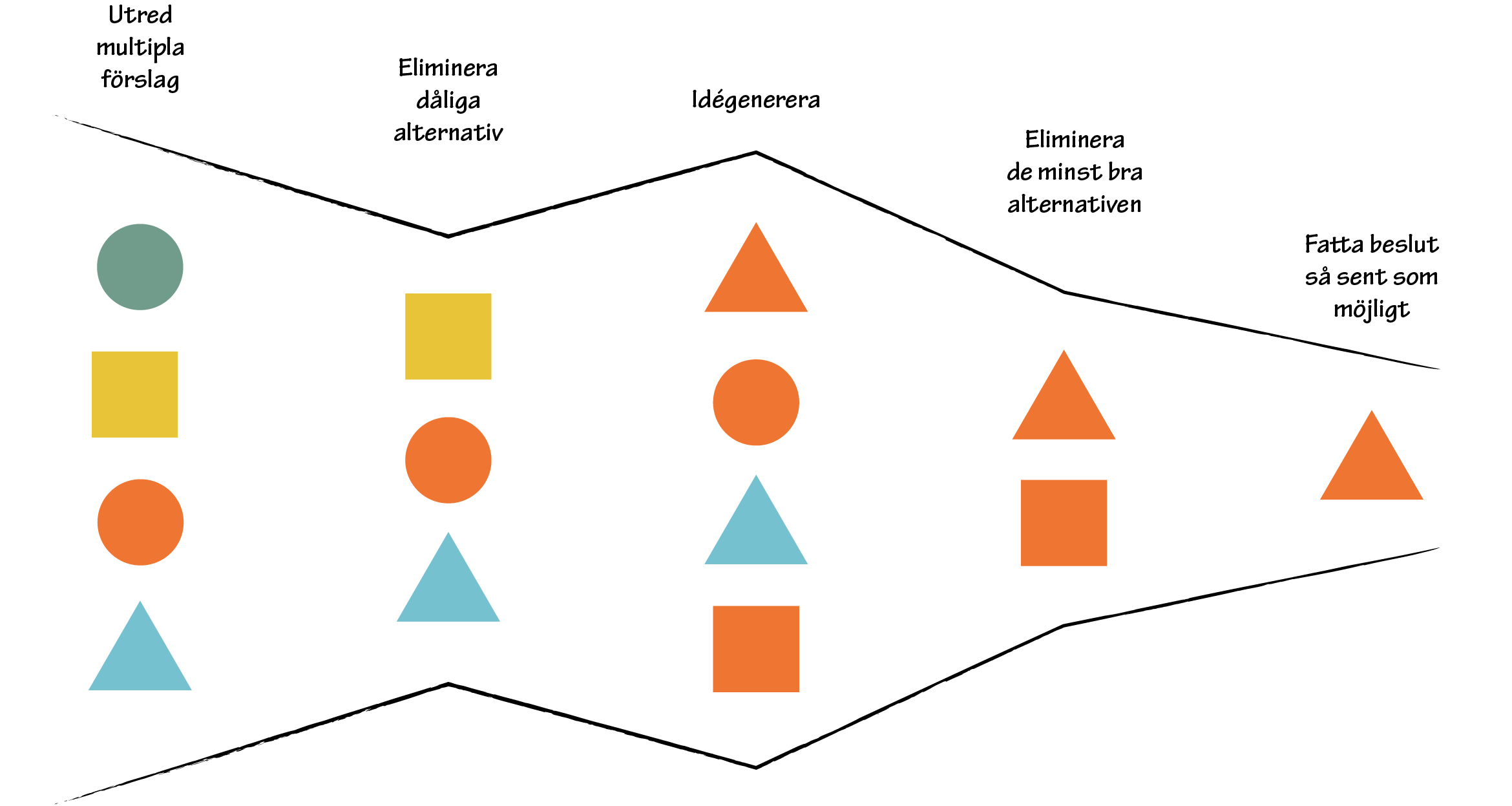 Set-Based Design (SBD) är en metod för att hantera komplexa beslut under osäkerhet. Istället för att tidigt låsa sig vid en lösning, arbetar du och ditt företag parallellt med flera alternativ – ”sets” – som gradvis förfinas och testas tills den mest hållbara vägen framåt blir tydlig.